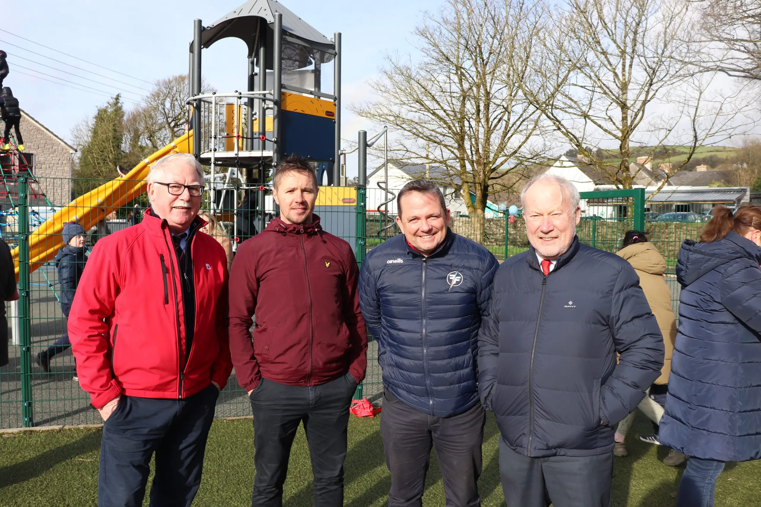 Pictured at the opening of the playground with school principal Aonghus O’ Brien were Mick Guinee and Gerry Murphy. Legendary Clare Hurler and All Star Davy Fitzgerald officially opened the new amenity.