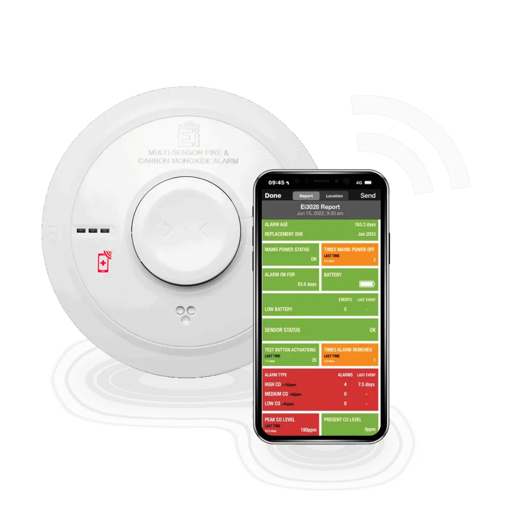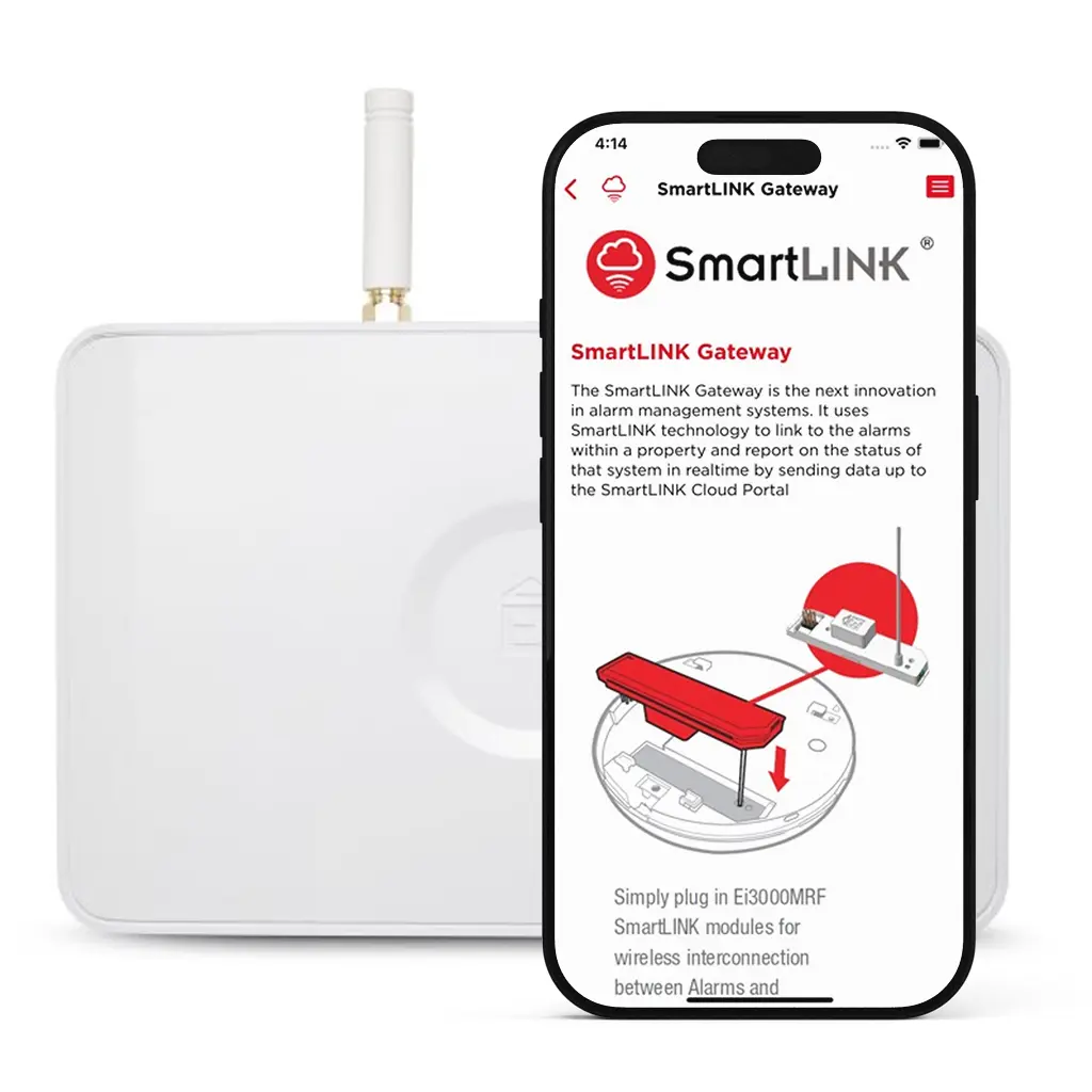 All Ei alarms and sensors equipped with an RF module can connect to a gateway hub within the home. The hub subsequently connects, via cellular, to a remote monitoring portal and a residents’ app.